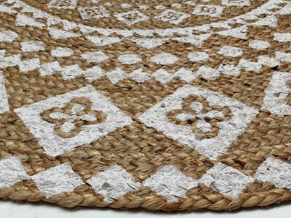 Vloerkleed rond jute wit Mandala print ø 120 cm