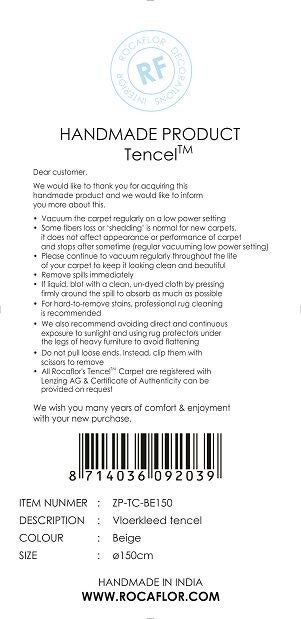 - Kleur Beige Materiaal Tencel TM -Plain cut pile 3,0 kg Gewicht Netto: 7,3 kg - Bruto: 8,4 kg