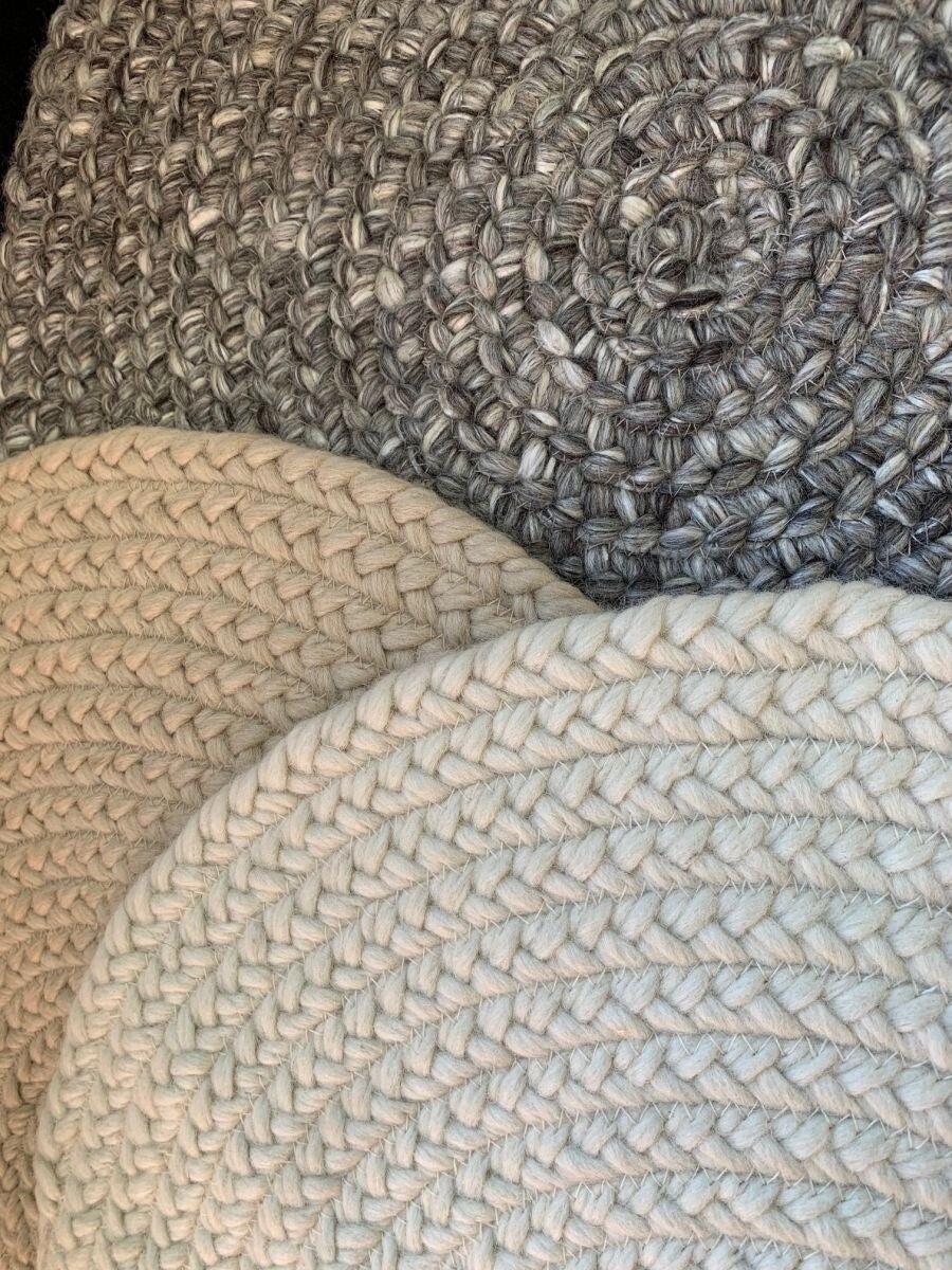 Dit vloerkleed is gemaakt van 100% gevlochten Nieuw Zeeland wol in ivoorwitte tint. De wol is na spinnen, gevlochten, waarna deze rond gestikt zijn tot dit mooie vloerkleed. Het kleed is bestemd voor het interieur, naast de sofa of op de slaapkamer bij het bed. Het comfort en behaaglijke gevoel van dit kleed, maakt dat je ook naast de sofa gewoon heerlijk op de grond op dit kleed kunt zitten. 's ochtends wakker worden en je bed uitstappen met dit behaaglijke gevoel onder je voeten, geeft echt het genieten van het luxe thuisgevoel!