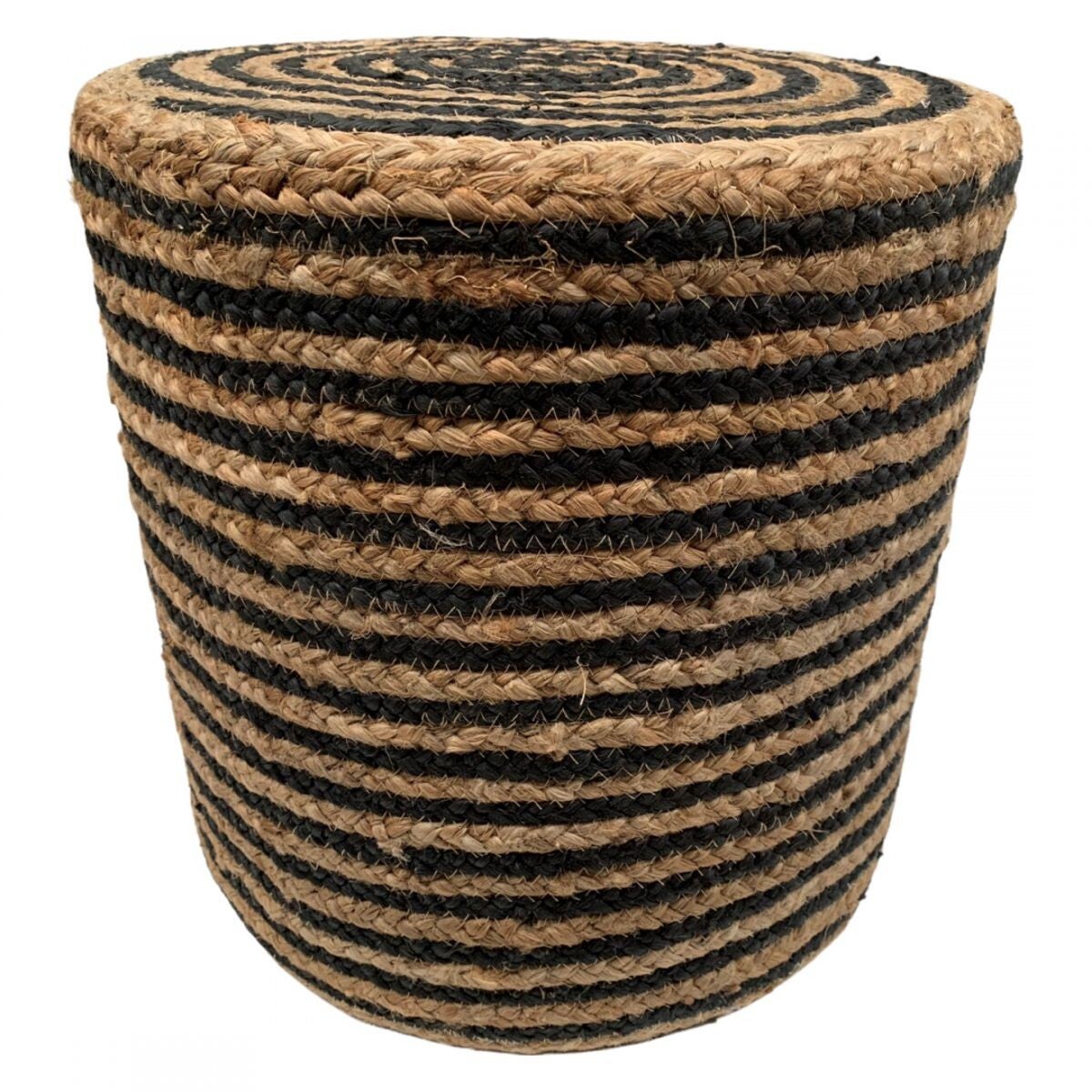 Poef rond jute concentrisch naturel zwart 40x40x40cm